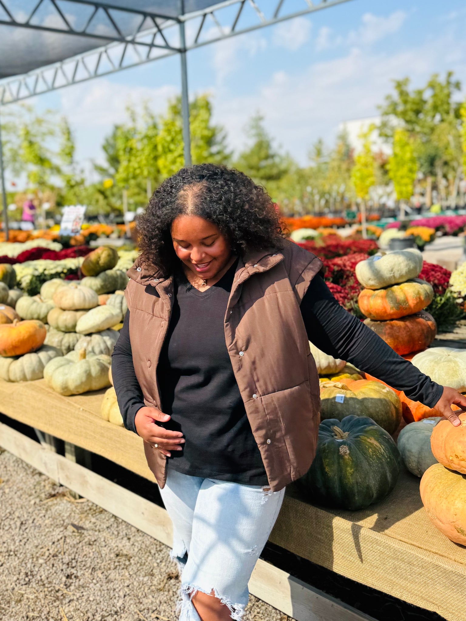 It’s officially vest season! This brown puffer vest can be easily paired with any long sleeve to complete the look. It’s warm, has snap buttons, and front pockets. Vest runs true to size.