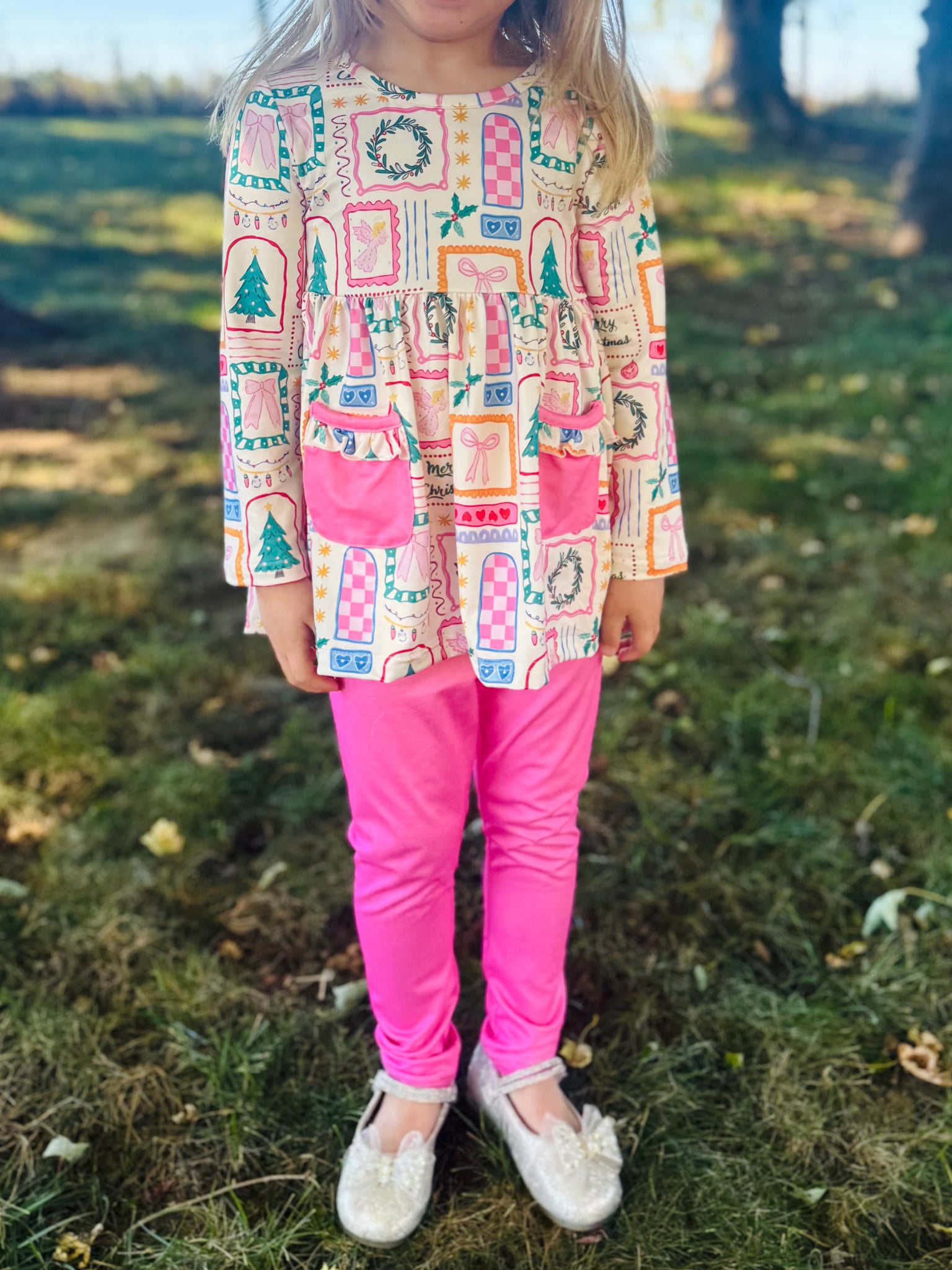 Loving these stretchy, soft, bright pink pants for kiddos! They match the Fun Christmas Kids Long Sleeve Top perfectly, sold separately. Pants run true to size and have a stretchy, elastic waistband.